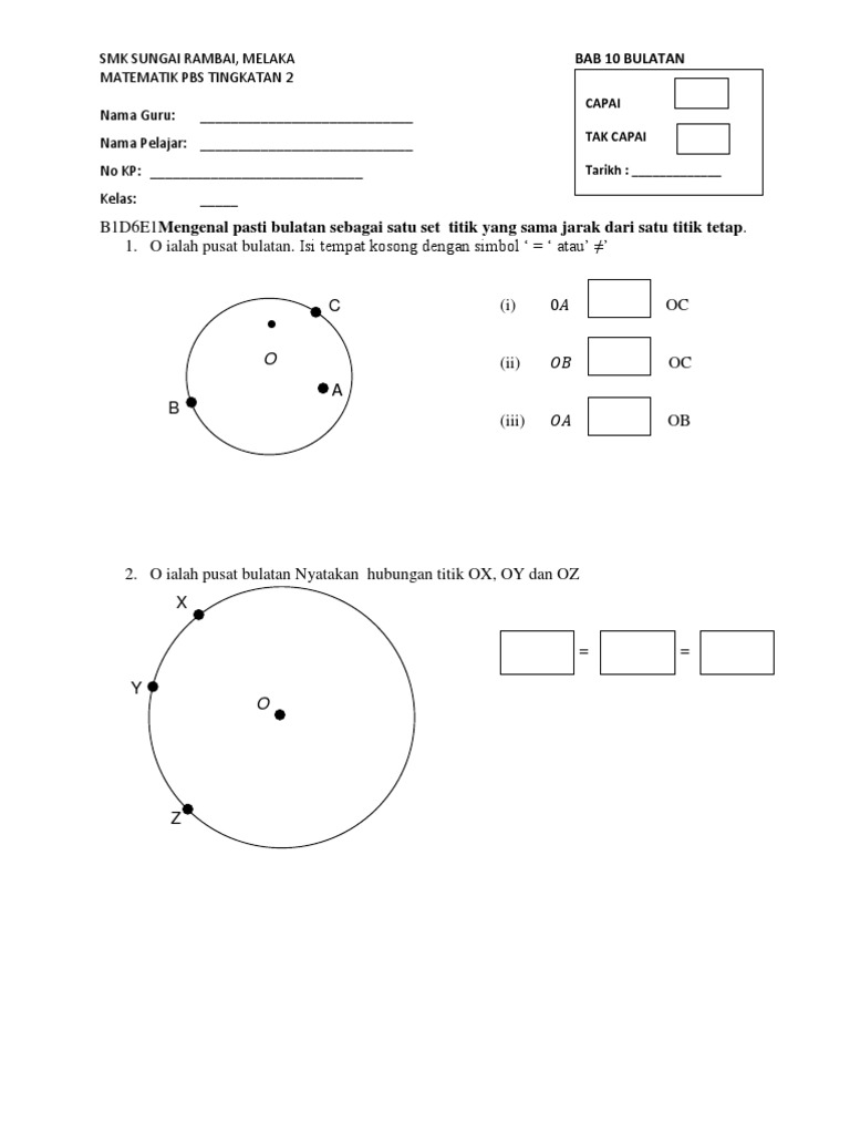 Matematik Tingkatan 2 Bab 5 Bulatan Activity